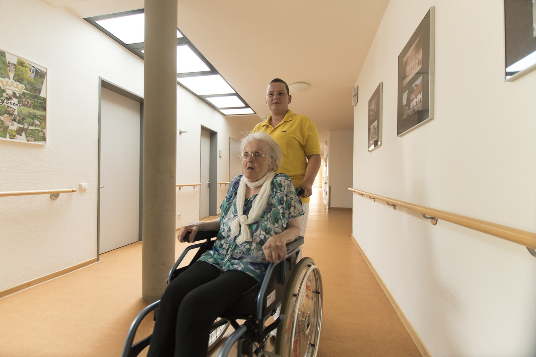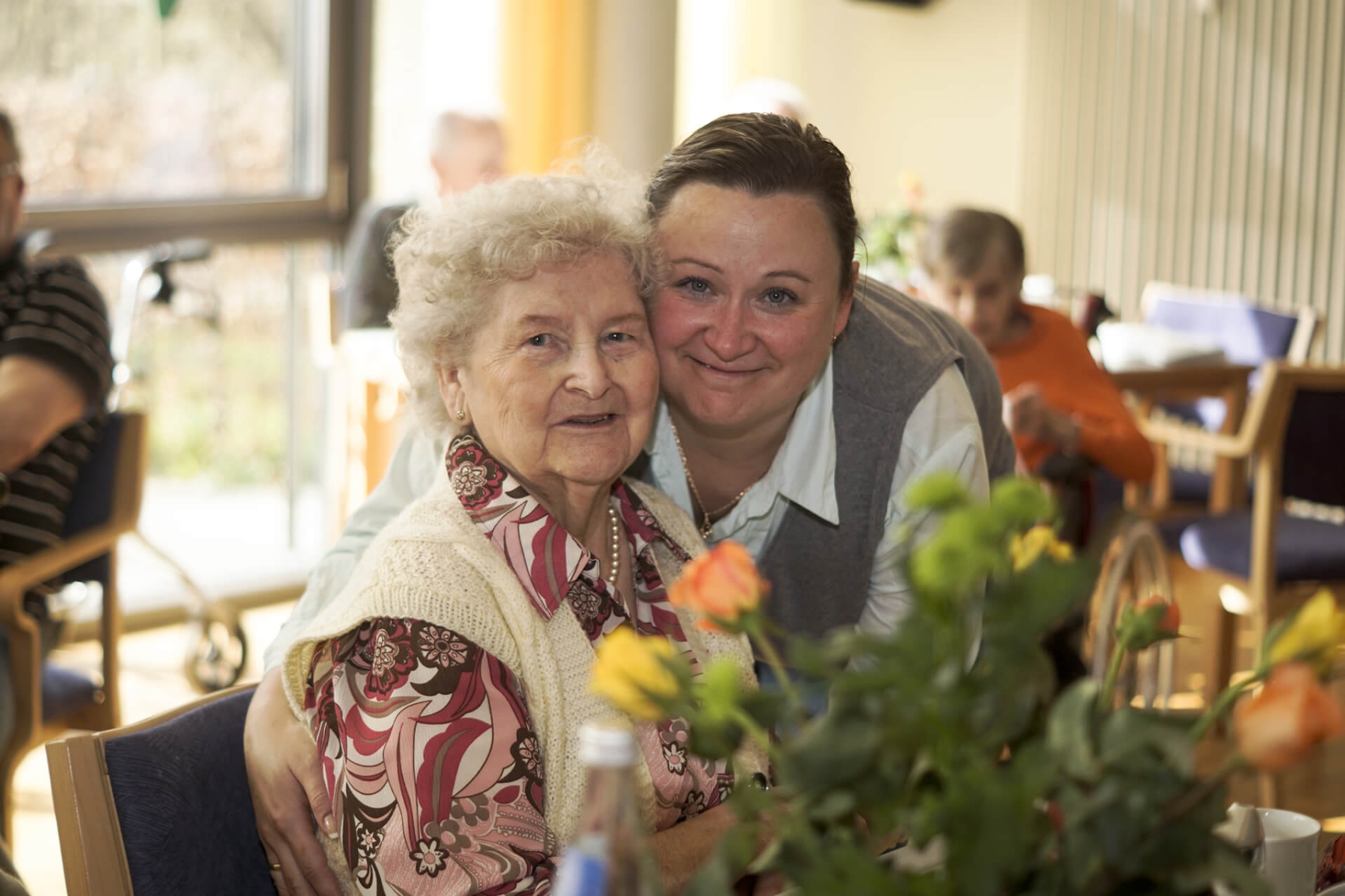 Pflegezimmer und betreute Wohnungen sind hier im selben Gebäude untergebracht. Durch die gemeinwesenorientierte Vernetzung und den Verbleib im vertrauten Wohnumfeld bleiben soziale Kontakte erhalten.